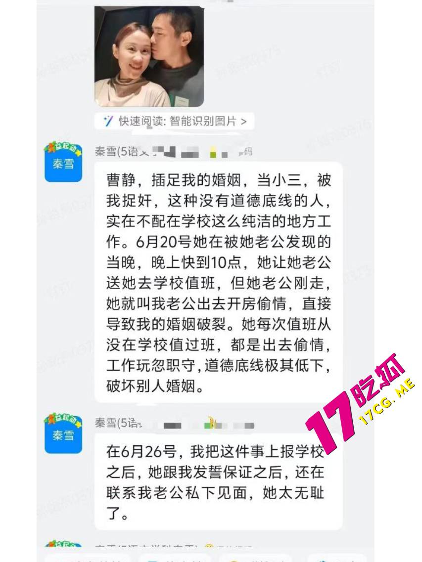 原配爆料,该女教师插足其婚姻当小三被捉奸,这种没有道德底线的人,实在不配在学校这么纯洁的地方工作。