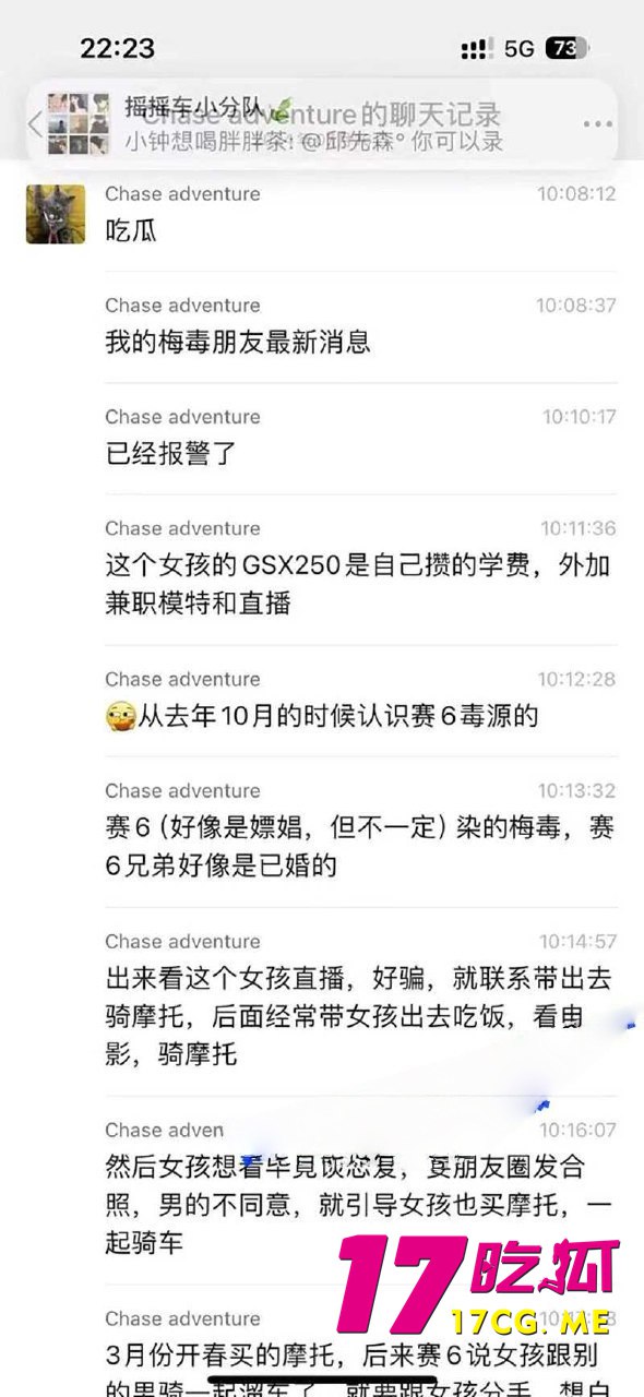 可怕!车友圈是真的乱啊!超美的大学生小姐姐竟遇到个渣男,为了和男友亲近,竟卖也买了一辆摩托!结果被骑摩托的车友白操了好几个月给甩了,这时候她已经被男友传染梅毒了!结果因为姿色太美,又被三个车友给无套骗炮了,这下可炸锅了!初步统计就有6男3女感染梅毒,有俩还是梅毒2期!都惊动警察叔叔了!